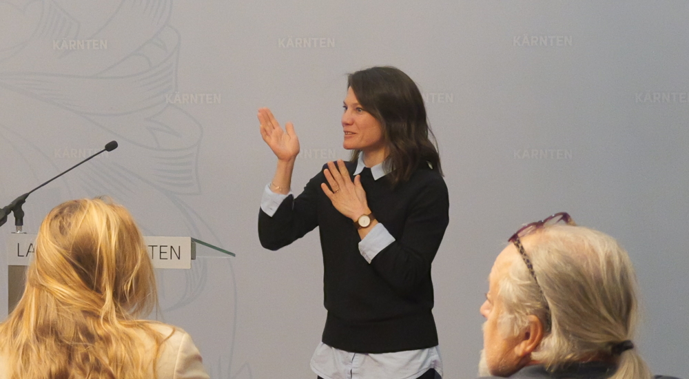 Um den TeilnehmerInnen der Veranstaltung einen kleinen Denkanstoß zu geben und Gespräche zu ermutigen, präsentierte Katharina Kropshofer, Vorständin im Netzwerk Klimajournalismus Österreich und Leiterin des Natur-Ressort im Falter, einige interessante Gedanken zum Thema „Übers Wetter reden: Wie geht gute Klimakommunikation?“.
